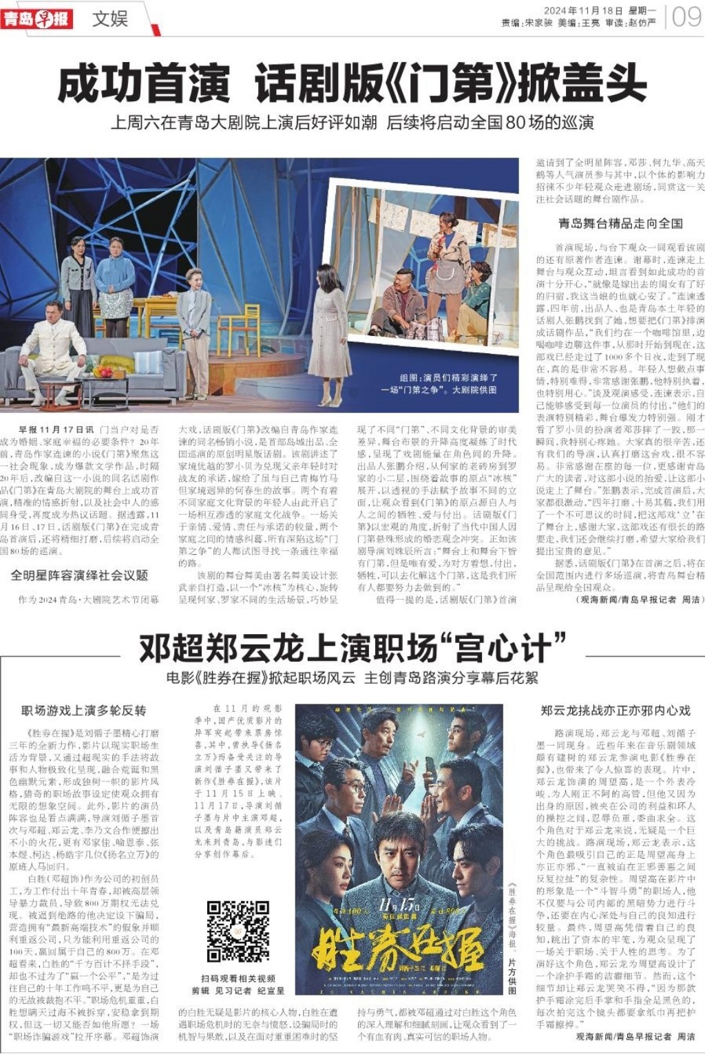 成功首演 话剧版《门第》掀盖头
