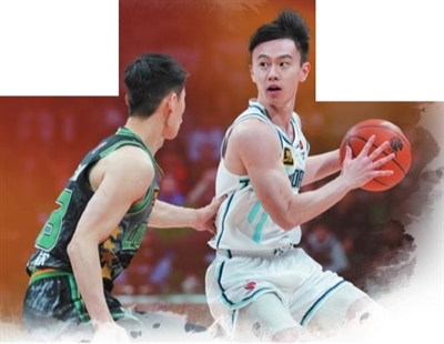 国信海天男篮球员程望樊(右)在比赛中。新华社发