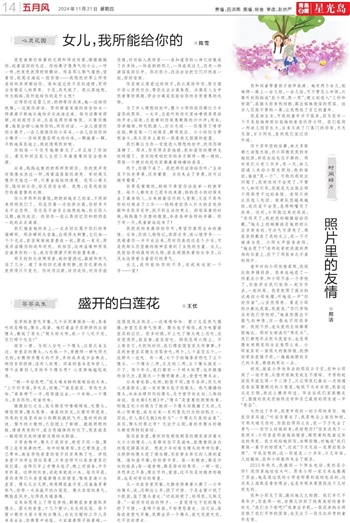 我把我的来路讲给你听,希望你重燃生命的激情。后来,你读人物传记,读历史书,读心理学书……我看着你一步步走出来,那时你虽然还是个少女,可是我却从你坚毅的眼神里看到了女性的力量。女儿,我能给你的最好的礼物,就是顽强执着的生命力,以及永远带着力量前行的勇气。