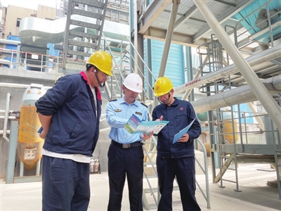 市生态环境局即墨分局工作人员对青岛即热集团帮扶指导。