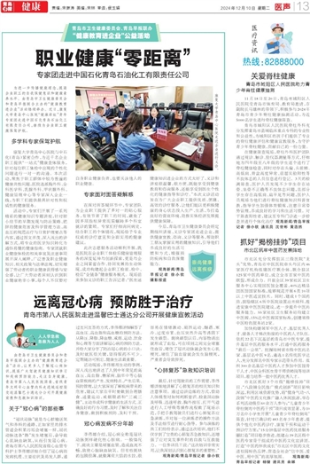 “冠状动脉”就是为心脏输送氧气和养料的通路,正如家里的排水管道会积累污垢会堵塞一样,冠状动脉这条“路”发生堵塞后,会导致心肌缺血缺氧,从而引发冠心病。青岛市第八人民医院省级心血管专科护士李伟娜详细介绍了冠心病的发病机理、主要症状及易发人群,通过互问互答的方式,李伟娜详细解答了高血压、高血脂和高血糖的预防方法。从降压、降脂、降血糖、戒烟、运动、饮食和心理等方面讲解冠心病的预防方法,并给大家分享了防治冠心病的小口诀:及时就医很关键,坚持服药不可少。定期随访可别忘,健康生活最重要。
