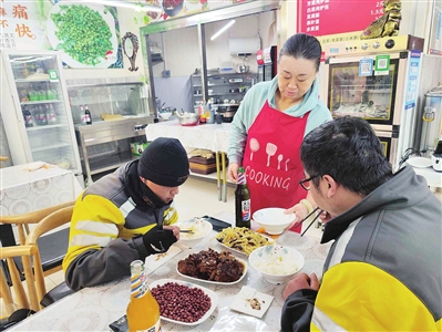 “到这来吃会比较方便,中午我不想回去做饭,就在这里吃,再就是祖大姐这里卫生做得很好,吃着安全放心。”美团外卖配送员陈刚说。下午2点多,几名刚忙完的外卖配送员,在祖彩霞的小店里吃上了热乎的饭菜。原来,根据快递小哥用餐时间不规律的特点,祖彩霞推出了延时留餐服务,为午饭时段微信留言的快递小哥、外卖员留餐至下午3点。