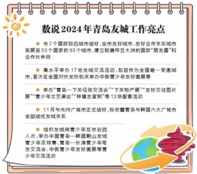 市委外办于今年打造“青岛市国际友城高质量发展年”,重点从优化友城全球布局、提升友城交往水平、丰富友城合作成果等三个方面着手,推动我市友城工作提质增效。