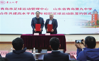 从这个意义上来讲,12月18日下午,在青岛九中举行的青岛市足球运动管理中心与青岛九中合作共建高水平青少年足球运动队签约仪式,以及青岛九中“青岛市校园足球综合改革实验基地”正式揭牌,给这道“题”开创性地提供了一条最优解。