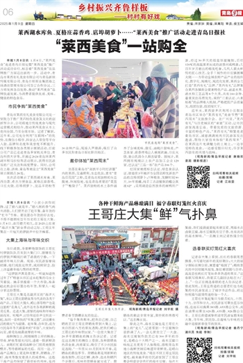 王哥庄大集是名副其实的“海洋大集”,有以王哥庄甜晒鱼等为代表的各类干海产品,王哥庄大馒头、崂山茶等特产也是这里的“名角儿”,此外还有各类新鲜的蔬菜瓜果。走进大集,浓郁的海味和年味扑面而来。吆喝声、讨价和还价声交织在一起,如同一首欢快的“年集之歌”,诉说着生活的烟火气与温情。赶年集、办年货,成为市民每年冬天最喜欢的“年俗”,大家如约而至,感受岛城最浓厚的年味。