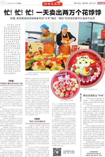 王哥庄大馒头、莱西花饽饽、即墨花馍……作为春节重要的传统文化符号,无不向世界展示着“非遗闹春”的浓浓年味。