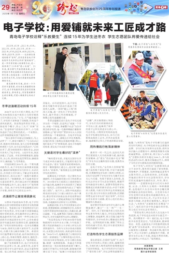 2010年,41件 ;2011年,43件;2012年,43件;2013年,45件……2021年,47件;2022年,46件;2023年,48件;2024年,50件……这些看似普通的数字“密码”,其实是青岛电子学校每年冬天和学生间的“爱的暗号”,是一件件厚实暖心的御寒冬衣,是一场持续了15年的“爱心长跑”。15年来,每当寒气开始侵袭岛城,电子学校的冬季送温暖活动迅速启动,老师们悉心收集起每一名需要关爱学生的穿衣尺码,为他们购置好抵御寒潮的冬衣。
