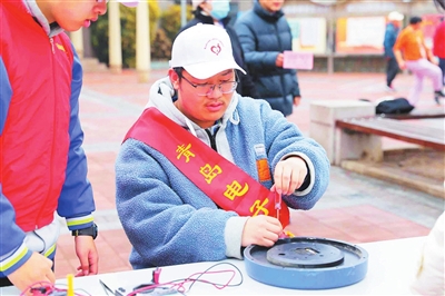 电子学校“e米阳光”志愿服务队成立于2015年,服务项目涵盖了家电维修、网络维护、平面摄影、玩转智能设备等专业服务项目,以及助老扶幼、文明创建、环境清扫等非专业社会服务项目,学生们的足迹遍布岛城的社区、车站、景点、福利院……志愿服务是学生们对生命价值、社会、人类和人生观的一种积极摸索,也是他们人生志向从培养志趣发展到奉献社会的良好契机。正是因为电子学校老师们的关爱如同温暖的阳光,时刻照耀着学生的心灵,才让学生学会了感恩与奉献,学会更好地爱他人、爱这个社会。“e米阳光”志愿服务队里都是“大忙人”,他们在行动中体会着自我价值,努力成长为对社会有用的人。