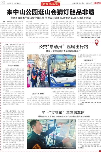 早报1月17日讯 1月17日,青岛城运控股公交集团市北巴士公司在途经岛城多个市场的30路和209路公交车上推出便民服务新举措,为市民出行提供便利。