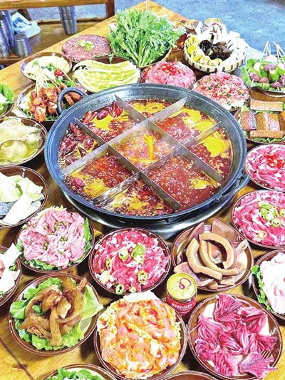 吃川渝火锅,有几样东西甚至比肉还重要。手撕鲜毛肚两盘起,灰黑色的“鸡皮疙瘩”遇热收缩,筷子划过加了陈醋蒜泥香菜的油碟底料,鲜嫩的爽脆在牛油的包裹下,时不时还能冒出一股蒜的辛辣和醋的酸劲。新鲜的鸭血泛着紫红的颜色,在头顶忽闪的灯光折射下,甚至有点耀眼。一次性全部倒进去,“咕嘟咕嘟”煮到颜色变深,体积膨大。拣出来咬一口,瞬间爆出鲜汁。黄喉、鸭肠、麻辣牛肉、现炸酥肉、苕粉……一样也不能少。实在辣热了就来口啤酒,或者来碗冰粉。最后来个脑花收尾:豆腐般软嫩的质感,入口却如此风韵醇厚,直接让多巴胺飙到极致!