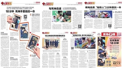 在上榜的13名优秀救护员当中,有多位早报新闻人物:2024年1月4日青岛早报以《18分钟 死神手里抢回一命》为题刊发了整版新闻报道,同年1月5日青岛早报以《18分钟急救背后是苦练真功》为题刊发了整版的独家探访,揭秘了地铁海尔路站值班站长魏市民带领站务员刘文亮及时出手、敢于出手使用AED救治乘客的“秘籍”;2024年7月20日青岛早报以《跪地抢救 “地铁人”3分钟救回一命》为题,报道了青岛地铁员工刘吉祥通过胸外按压和AED设备让晕倒女乘客转危为安的事迹;2024年7月22日,青岛早报以《与死神竞速 女子在羽毛球馆突然倒地抽搐 青大附院护师张云跪地按压抢救》为题,报道了青大附院护师张云凭借专业急救措施成功施救倒地抽搐女子的事迹;2024年7月24日,青岛早报刊发《“虽然听不到,但不影响我救人”》的整版报道,讲述了听障人士李兆成功施救无意识倒地男子的事迹。