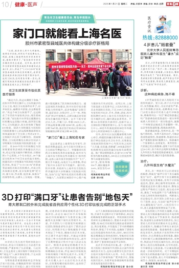 “以前,家里老人有个头疼脑热,就得往市里跑,时间长不说花费也大,现在,在镇上就能预约到市里来的专家,看病方便多了。”家住胶州市李哥庄镇的李先生说道。近年来,胶州市作为国家紧密型县域医共体建设试点县(市、区),形成了“1+3+18+N”的紧密型县域医共体总医院模式,在紧密型县域医共体2024年度中期评估中,达到10A1B,位列青岛市第一层次;党建引领的医共体建设经验在第6届中国健康县域大会上得到推广。