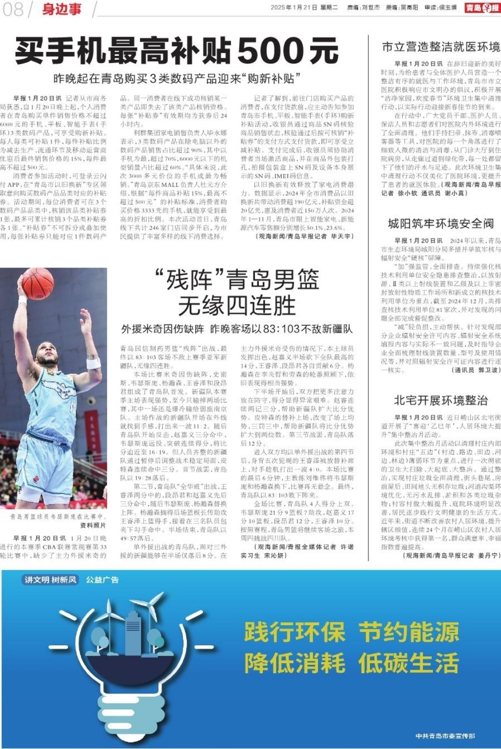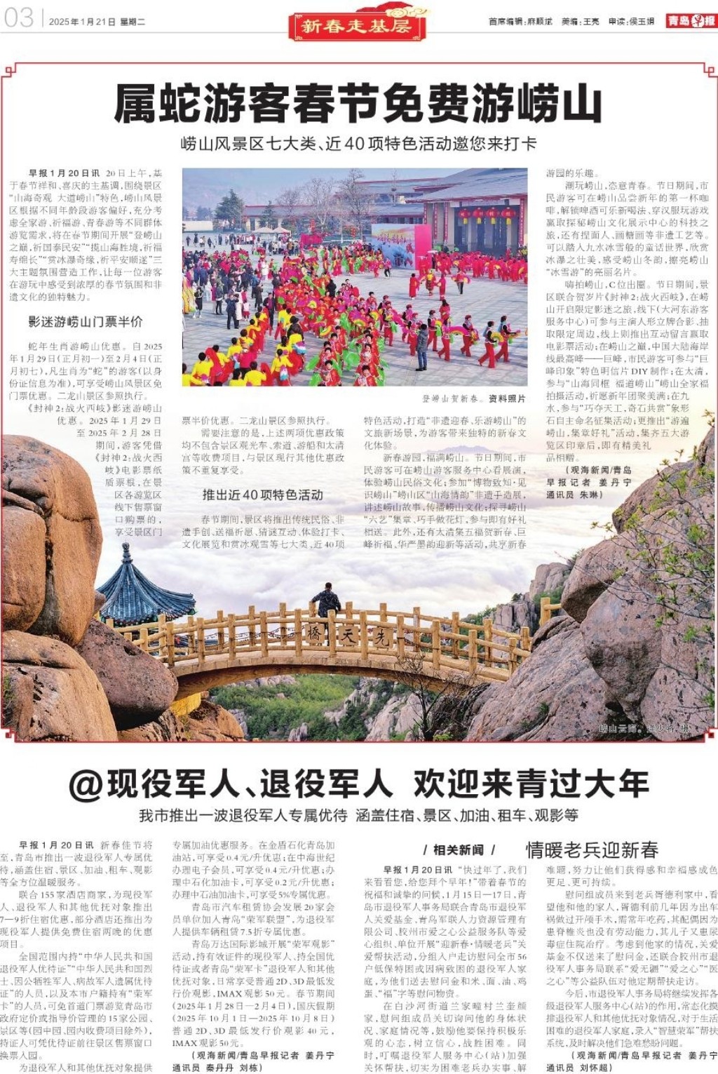 A01 头版 A02 要闻 A03 新春走基层 A04 新春走基层 A05 青岛面孔 A06 发布 A07 大爱青岛 A08 身边事 A09 健康周刊 A10 健康·医声 A11 常青树 A12 天下