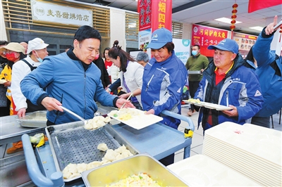 早报1月22日讯 岁暮小年至,人间小团圆。1月22日,“爱心青岛好客山东 一碗饺子共守家园”在市南区泰祥源美食广场温暖开启。这场公益活动由青岛市餐饮行业工会联合会及青岛市团餐与酒店服务业协会共同发起,联合多家行业协会级会员企业、爱心企业及企业家、社区组织和新就业人群共同举办,在新春佳节来临之际,为坚守在各个岗位的工作人员送上温暖与关怀。