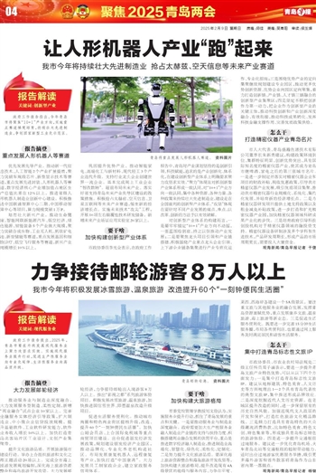 提升文化旅游品质。开展旅游强市建设行动。举办上合组织旅游和文化之都主题活动20场以上。完成全市海上旅游发展规划编制,深化海上旅游资源整合和海岛旅游开发攻坚。大力发展邮轮经济,力争接待邮轮出入境游客8万人以上。推出“影视之都”系列旅游体验项目。积极发展冰雪旅游、温泉旅游,加快推进国信雪世界、即墨温泉改造升级项目。