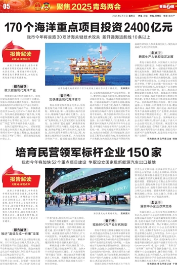 政府工作报告提出,今年青岛市将深化国资国企改革,完成市属企业主业核定。新增进出口实绩企业1000家以上。提升开放平台能级,高水平承办上合地方经贸合作大会、国际投资贸易博览会。提高招商引资质量。办好跨国公司领导人青岛峰会、国际友城交流月等重点活动。建强青岛都市圈,加快总投资3274亿元的52个重点项目建设。