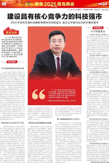 “2025年,青岛市将继续紧紧围绕市委、市政府部署,以更高标准、更实举措推进高水平科技自立自强,坚定不移以科技创新引领新质生产力发展,为奋力推进中国式现代化青岛实践贡献更大科技力量。