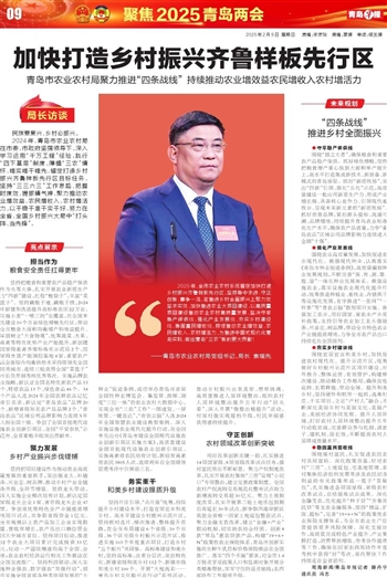 “2025年,全市农业农村系统锚定加快打造乡村振兴齐鲁样板先行区,坚持稳中求进、守正创新、事争一流,在推进乡村全面振兴上聚力攻坚求实效,加快推进农业大项目建设,以高质量项目建设推动农业农村高质量发展,坚决守牢稳产保供线、强化产业发展线、夯实乡村建设线、稳固富民增收线,持续推动农业增效益、农民增收入、农村增活力,为推进中国式现代化青岛实践,做出青岛“三农”新的更大贡献!