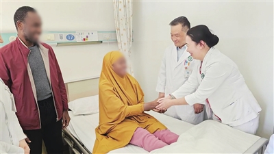 来自加纳的年轻夫妻感谢青岛医生。 院方供图