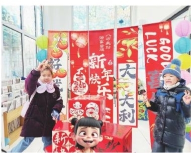 在市北区海逸幼儿园,创意美术、户外游戏、彩画绘新、闪耀星光秀、魔法气球屋、美食缤纷乐、奇幻魔术、跨栏迎福、巧制花灯……仪式感满满的开学第一天,幼儿园的孩子们用笑声解锁成长新关卡,用福气点亮新学期。趣味剪纸、拓印福字,在与传统文化的对话中,孩子们尽情想象,感受着传统文化的独特魅力。