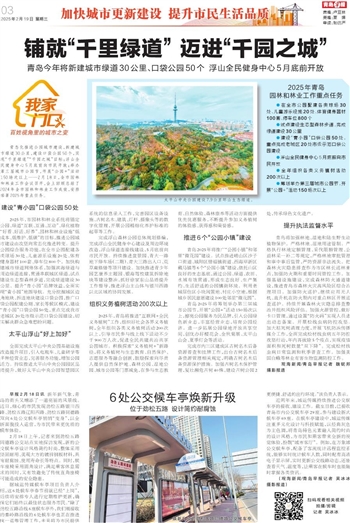 2025年,市园林和林业系统将锚定公园、绿道“互联、互通、互动”、绿化植物“好看、好活、好养”、园林和林业设施“低成本、低维护、低碳”的目标,推进公园城市建设由攻坚向常态化推进转变。提升公园综合服务功能,在全市公园配建各类球场30处、儿童游乐设施20处、体育健身器材100套、停车位800个。加快构建城市绿道网络体系,加强滨海绿道与周边绿道连接,贯通串联城区绿道,试点建设生态型森林步道,完成绿道建设30公里。提升“青小园”品牌效益,全面实现“青小园”地图导航。充分挖掘城区边角地块、拆违地块建设口袋公园,推广口袋公园配建公厕、家长等候区模式,建设“青小园”口袋公园50处,重点完成我市老城区20处市级示范口袋公园建设,切实解决群众急难愁盼问题。