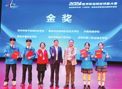 2024年10月28日,2024年世界职业院校技能大赛总决赛争夺赛中职组财经商贸赛道电子商务运营赛项,在漳州高新职业技术学校落下帷幕。青岛华夏职业学校教师李瑞祥和崔前指导的杨淇淇、朱坤霄、张俊哲、莫修鑫四位选手,凭借突出的技能实力与团队协作能力斩获金奖,这也是青岛华夏职业学校在国家级职业技能大赛上的历史性突破。两天后,在济南举行的新闻传播赛道动漫制作赛项中,华夏职业学校“梅开二度”,又一枚金奖彰显了学校在重量级职业技能赛事中的强劲实力。