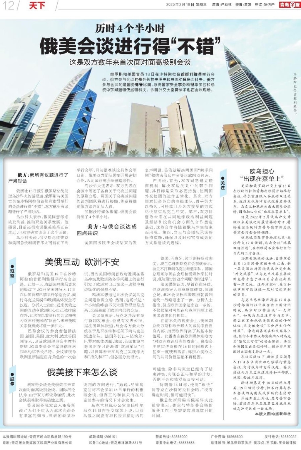 俄美会谈进行得“不错”
