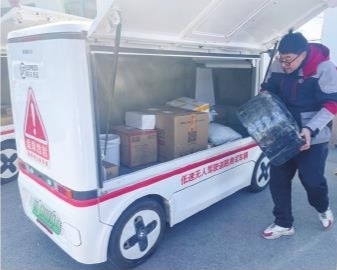 无人快递车在乡间穿梭。