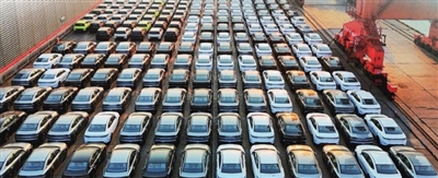数千辆国产新能源汽车停放在山东港口青岛港大港码头,等待装载出口。 观海新闻/青报全媒体记者 梁超 摄