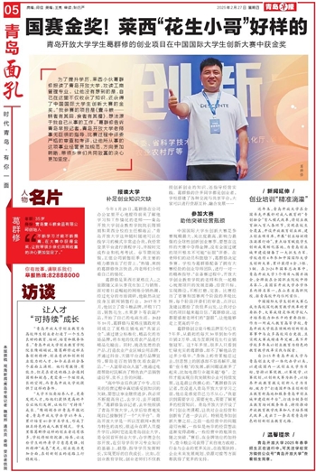 “高中毕业后我读了中专,在后来的经营过程中真切感受到知识的欠缺,要想让事业继续进步,我必须不断提高自己,去学习、去开阔眼界。”葛群修告诉记者,去年他报读了青岛开放大学,入学后惊喜地发现自己接触到了一个“大平台”。青岛开放大学是一所以互联网+教育为特色的高校,很适合在职人员提升学历;同时它还是青岛创业大学,是全国首所创业大学,办学理念包容开放,在引导学员学习专业知识的基础上,鼓励、指导学员发挥特长,实现更好的自我成长。比如,在创业教育学院,创业老师们不仅教授创新创业的知识,还指导经营实践。葛群修的许多同学都是创业者,学校搭建了各种交流与共享平台,大家可以进行资源互补、融合发展……