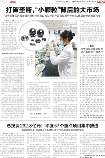 “我们现在研发的氮化硅镁基板烧结助剂已试验成功,正在进行量产化验证;改良升级的第二代轴承球粉,客户验证反馈也不错,基本达到竞品95%的效果,但是成本却能控制在一半以内。”高裕昆表示,未来,企业将进一步研发新一代的技术产品,继续扩大产能,争取在降成本的同时,把中国先进陶瓷技术提升到国际一流水平。