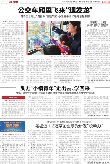 青岛包头路小学的周老师是此次活动的发起人之一,她表示:“二月初二是‘龙抬头’,我们希望通过孩子们的画笔将传统文化融入市民的日常出行中,让公交车成为传递节日喜悦和文化内涵的载体。”在周老师的带领下,学生们用稚嫩的笔触描绘出他们对“龙抬头”的理解,将传统文化与现代生活巧妙结合,为车厢注入了鲜活的生命力。