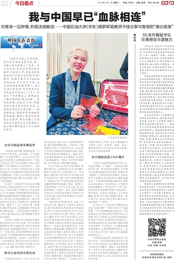 “中国也是我的家,我爱我的家。”来青岛多年,卡佳深刻体会到青岛对于国际人才的开放态度,也让她真正感受到“好客山东”的魅力。她说,“由衷地希望每一位有志于在中国发展、并愿意为中外交流与合作贡献力量的留学生,把握在华的宝贵时光,为自己的未来创造更多的可能。”