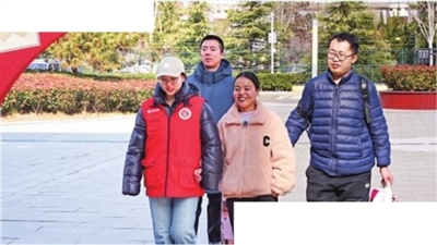 E动力志愿服务队志愿者护送张慧玉(右二)返校。