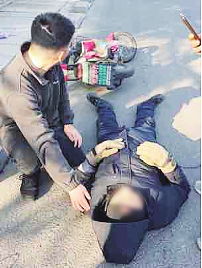 早报3月3日讯 近日,市民刘女士拨打青岛早报热线82888000反映,2月14日下午,一名男子疑似骑电动车摔倒,躺在崂山区滨海大道的马路上,身旁车辆川流不息。危急之时,一位驾车经过的年轻小伙伸出了援助之手。记者通过刘女士提供的联系方式,联系到了救人的青岛小伙谭祥勤。面对车辆川流不息的险境,这名22岁的军校生凭借专业素养展开教科书式救援,最终使伤者转危为安。