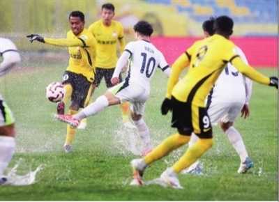 昨天下午双方再次对决,比赛从第17分钟57秒开始计时,一球在手的青岛西海岸队向对手发起潮水般的攻势,但是武汉三镇队的反击也是让主队门前一时间风声鹤唳,好在均被门将李昊巧妙化解。随后青岛西海岸队在前场完成抢断,段刘愚禁区外一脚远射稍稍打高。上半场结束,青岛西海岸队以1∶0暂时领先。易边再战,青岛西海岸队利用边路突破寻找机会,先是内尔松·卢斯带球突破之后的射门高出横梁,随后段刘愚大禁区外沿远射偏出立柱。第57分钟,青岛西海岸队做出换人调整,用高迪换下阿齐兹。第80分钟,青岛西海岸队右路传中,替补上场的高迪头球攻门被扑出,段刘愚补射破门,帮助球队将领先优势扩大为2∶0。此后,青岛西海岸队用张修维换下段刘愚,用小将刘柏杨换下内尔松·卢斯。最终,青岛西海岸队主场2∶0战胜武汉三镇队,取得新赛季首胜。