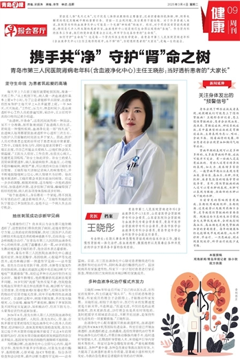 如何守护“生命线”?这是每一个肾内科医生的医学使命。在青岛市第三人民医院肾病老年科(含血液净化中心)主任王晓彤的眼中,永不停“析”,当好透析患者的“大家长”,是她一生的追求。