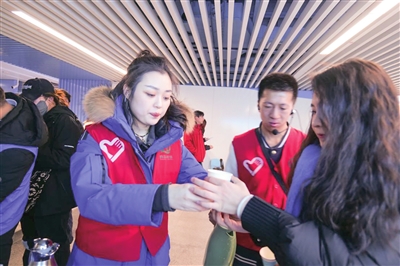 去年12月31日晚上8点,站务员宋佳悦和胡德硕结束白班,外出吃了顿饭,返程时发现车站已挤得水泄不通。“到处都是人,出站的乘客站满了人行道。”两人当即回到站内,再次投入现场保障。次日凌晨两点,跨年活动的热闹劲仍在持续,车站附近的营业商铺早已座无虚席,成百上千的市民游客聚在一起,等待观赏新年海上的第一次日出。由于露天气温较低,石老人浴场站选择不关站,并免费提供座椅、热水和暖贴等御寒物品,让300多名游客在地铁站里度过了温暖一夜。