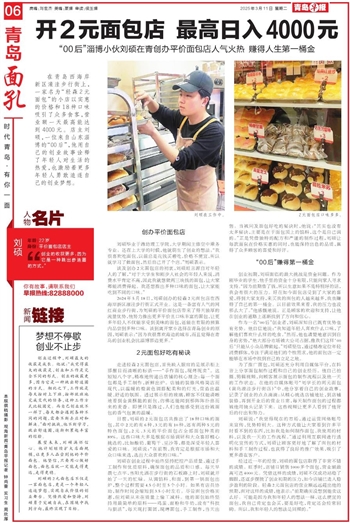 在青岛西海岸新区濠洼步行街上,一家名为“轻森2元面包”的小店以实惠的价格和18种口味吸引了众多食客,营业额一天最高能达到4000元。店主刘硕,一位来自山东淄博的“00后”,他用自己的创业故事诠释了年轻人对生活的热爱,也激励着更多年轻人勇敢追逐自己的创业梦想。