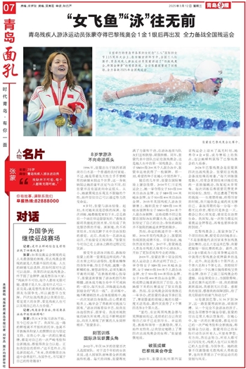 日前举行的青岛市各界妇女纪念“三八”国际妇女节115周年大会上,在巾帼宣讲环节中,全国三八红旗手、青岛残疾人游泳运动员张蒙讲述了“四战残奥会,终圆金牌梦”的艰苦历程。会后张蒙就重返了训练场,全力备战2025年全国残运会。
