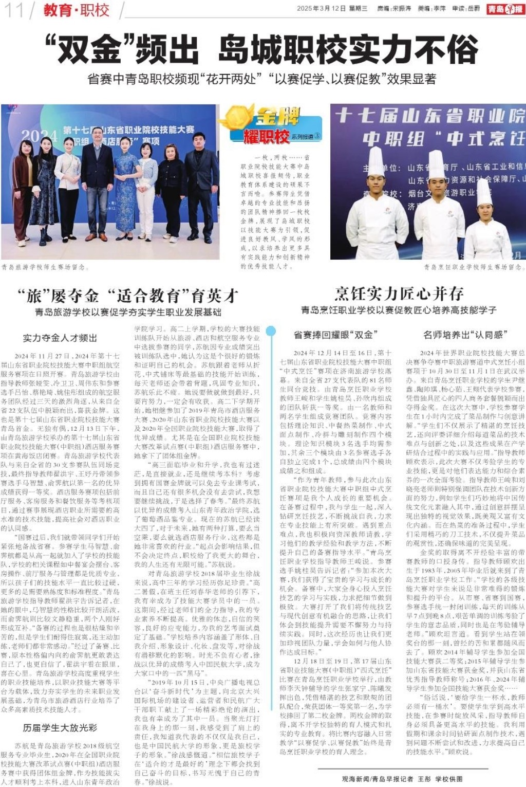 A01 头版 A02 直通2025全国两会 A03 今日看点 A04 发布 A05 发布 A06 青岛面孔 A07 青岛面孔 A08 都市圈 A09 身边事 A10 教育 A11 教育·职校 A12 天下