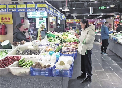 市民在农贸市场选购春菜。市南区委宣传部供图