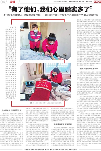 “大叔,我们来看您了,您最近感觉怎么样……”当清晨的阳光透过窗帘的缝隙,崂山区社区卫生服务中心的家庭医生团队如约而至,为失能老人带来了贴心的上门服务。医务人员一边询问,一边熟练地为老人量血压、测血糖,动作轻柔而专业,而后又细心为老人修剪指甲,叮嘱家属后续的护理要点。这样暖心的画面,如今在崂山区频频上演,一支默默守护居民健康的队伍——崂山区社区卫生服务中心的家庭医生团队穿梭于社区之间,用专业的医术和温暖的心,为失能老人送去关怀,为患者带来希望,用医者仁心书写着“健康崂山”的新篇章。