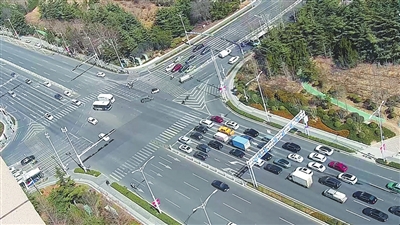 昨日上午8时,记者来到海尔路、同安路路口实地探访。此时正值车流高峰,但整个路口秩序井然,通行高效流畅。崂山交警大队风景区中队副中队长王健林正站在路口引导交通。王健林告诉记者,海尔路、同安路路口是崂山区的重要交通枢纽,汇聚来自多个方向的车流,全天通过该路口的车超过20万辆。“从李沧区、城阳区方向沿着黑龙江路驶入崂山区的车辆,以及从跨海大桥高架路和青银高速驶来的车辆,都需要经过这里。”王健林说,此外,路口周边分布着青大附院崂山院区、国信体育场、大拇指广场和崂山区第二实验小学等重要场所,车辆频繁进出,进一步加剧了交通压力。