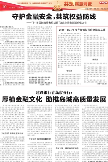 共筑满意消费,践行金融为民。为展现岛城金融机构在维护广大金融消费者的合法权益、优化消费环境方面的亮点和积极作为,青岛早报推出“3·15金融诚信品牌”展示活动,彰显青岛金融业重服务、塑形象、强内功的奋进力量,共同助力岛城金融业高质量发展。