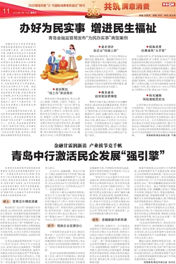 民营经济是驱动城市创新发展的重要源泉,民营企业是高质量发展的“生力军”。中国银行青岛市分行(简称“青岛中行”)充分发挥集团全球化优势、综合化特色,聚焦专班运作提效、专项政策提质,持续丰富产品谱系,全方位支持民营企业攻克技术难关、夯实产业发展根基,以金融力量推动“青岛制造”向“青岛智造”焕新升级,让金融与产业的双向奔赴在黄海之滨奏响崭新乐章。