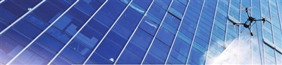 组图:无人机在高空清洗大楼。