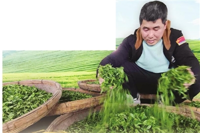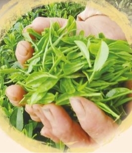 刚采摘的鲜茶叶。