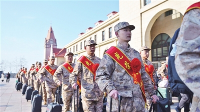 青岛市作为兵员大市,不仅承担为青岛市入伍新兵提供保障的任务,同时还要为周边地区来青岛市换乘飞机、高铁的新兵们提供好保障服务。随着运送新兵的车缓缓驶入军供站院内,现场工作人员整装列队,热烈欢迎这些从军报国的年轻人。