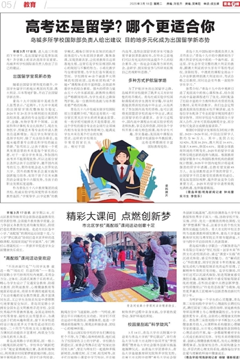 早报3月17日讯 新学期以来,市北区教育和体育局全面推动基础教育优质资源倍增、全面提升教育教学质量,全力争创义务教育优质均衡发展区,持续打造优质教育新高地。走进市北区各中小学,“高配版”的课间运动创意十足,与大学“梦幻联动”协同打造丰富多样的选修课程,校园里刮起“科学旋风”、专门聘任心理副校长……多措并举促进学生全面健康快乐成长。